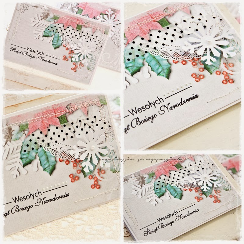 Co to za papierki? Jeszcze ich chyba nie widziałam nigdzie... Bardzo fajny efekt 3D - wydaje się, ze te serwetki, bombki są na piankach. Ale ja bym tak ładnie nie umiała tego papieru wyeksponować...